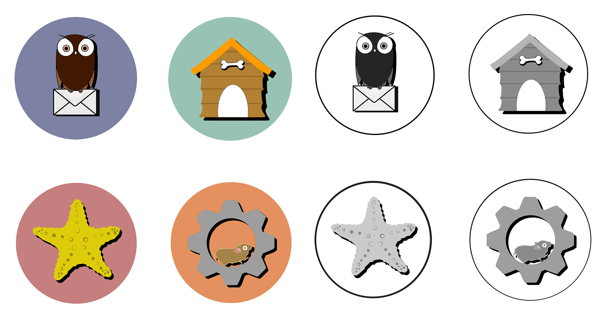 This is a set of icon that I made for my User Interface class. The icons are for home, favorite, mail and settings. The theme I picked for the icons are animals.