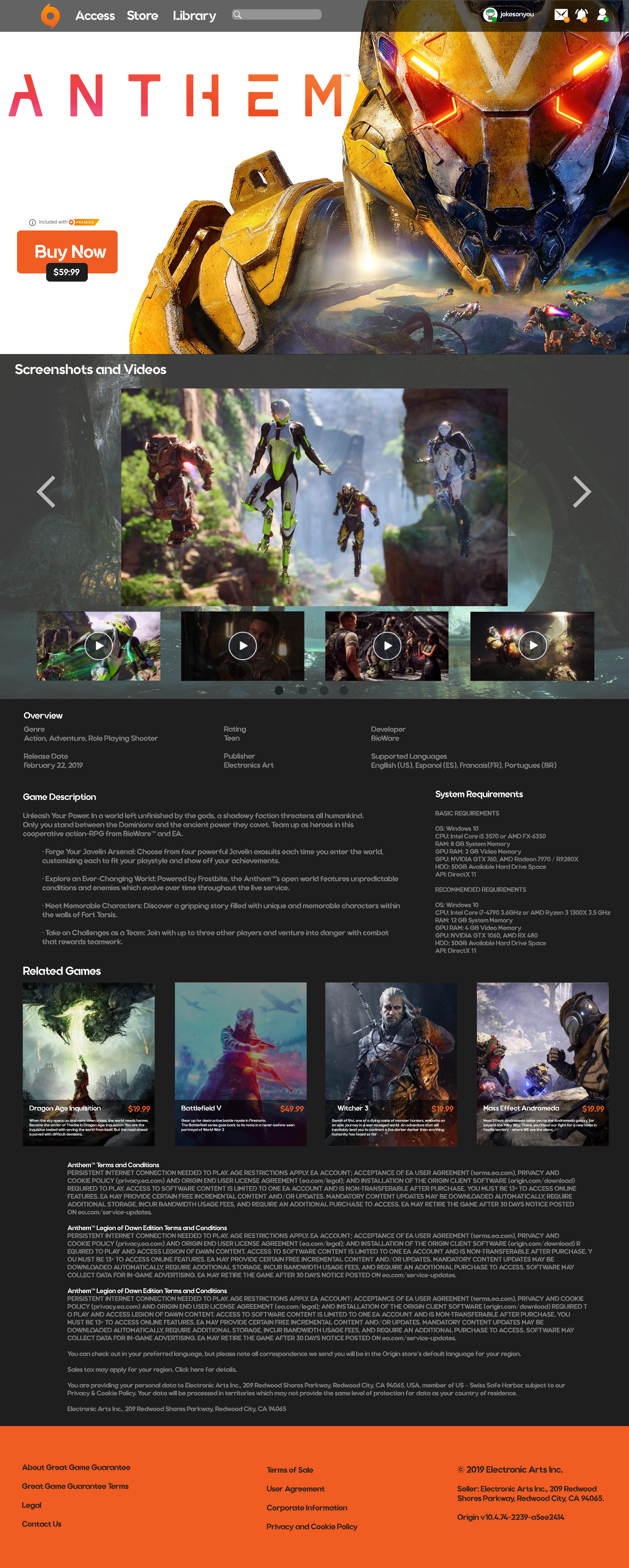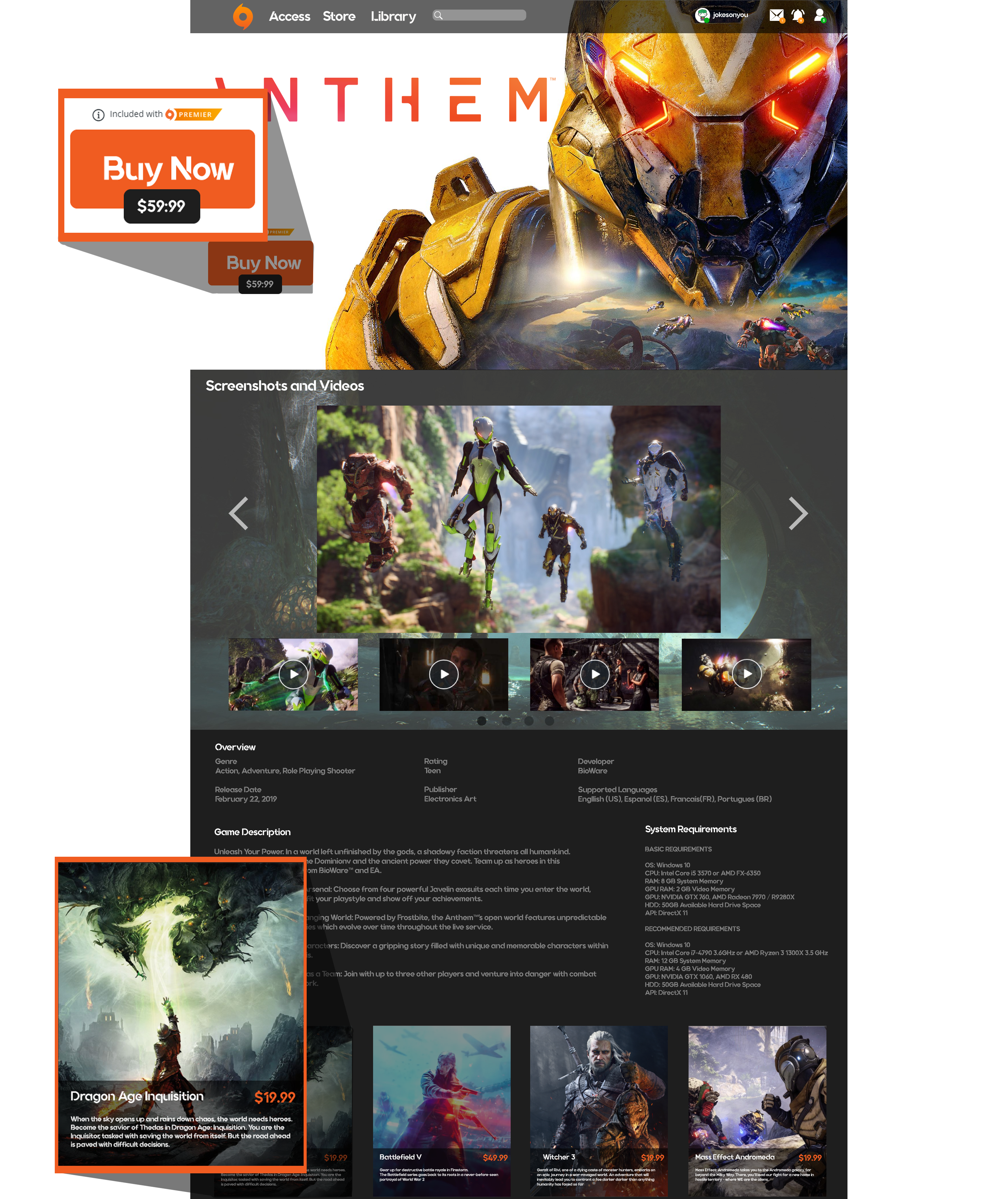 This is a redesign concept of the Origin game client, specifically the store and game info page. Origin is a game client of gaming Publisher Electronic Arts and competes with other game clients like Epic and Steam. I was inspired to do this concept after seeing a redesign idea of Steam's client