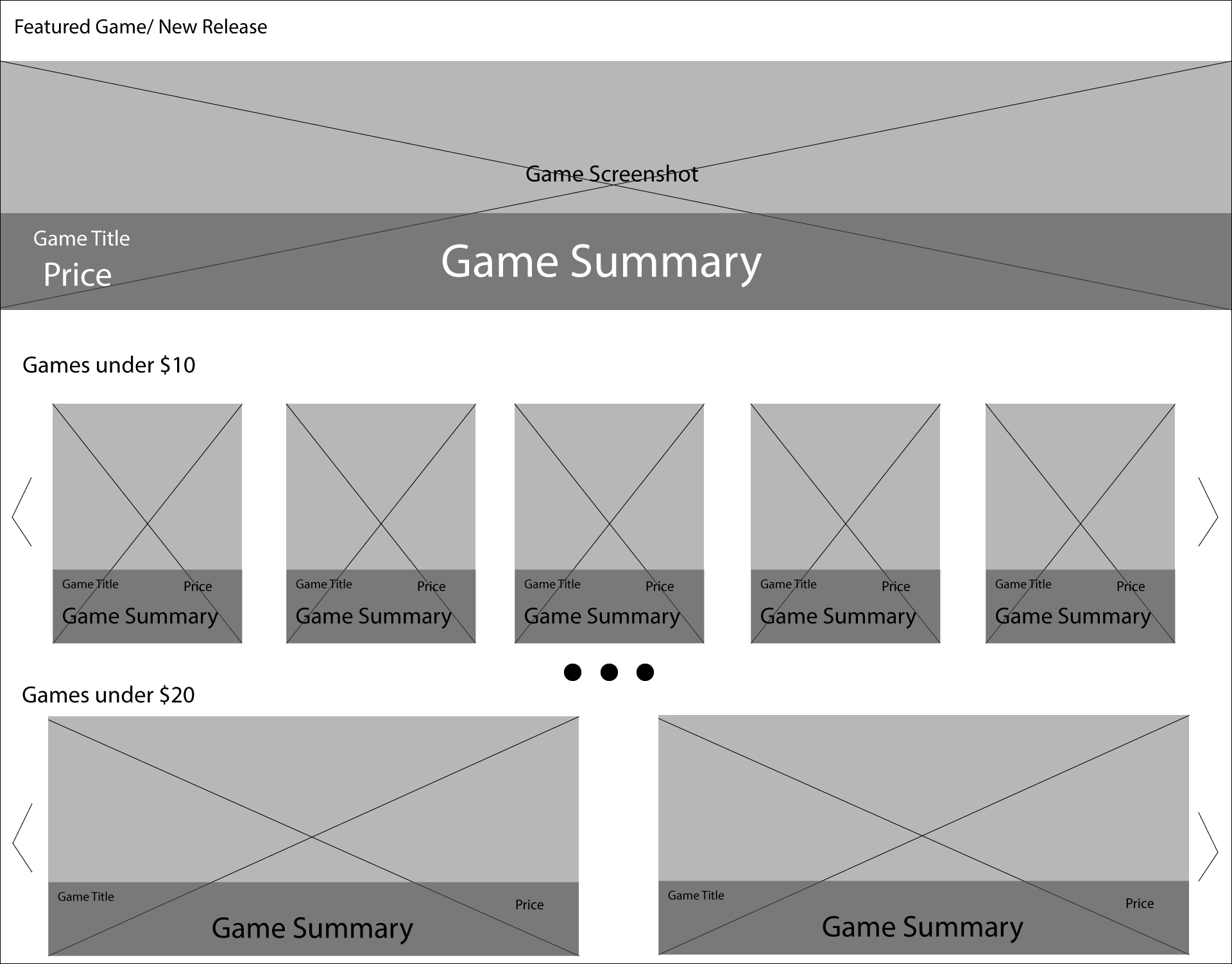 I included the deals page into the main page, which are the "Games Under $10" and "Games Under $20". I feel like if a company if having a promo, its best to show it up front to the customer.