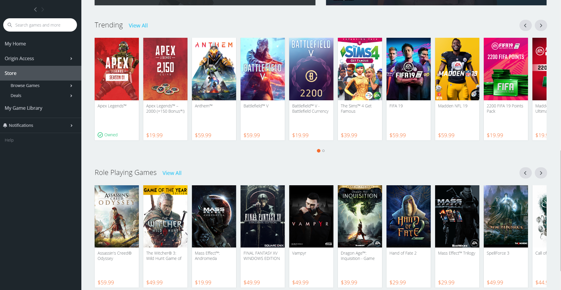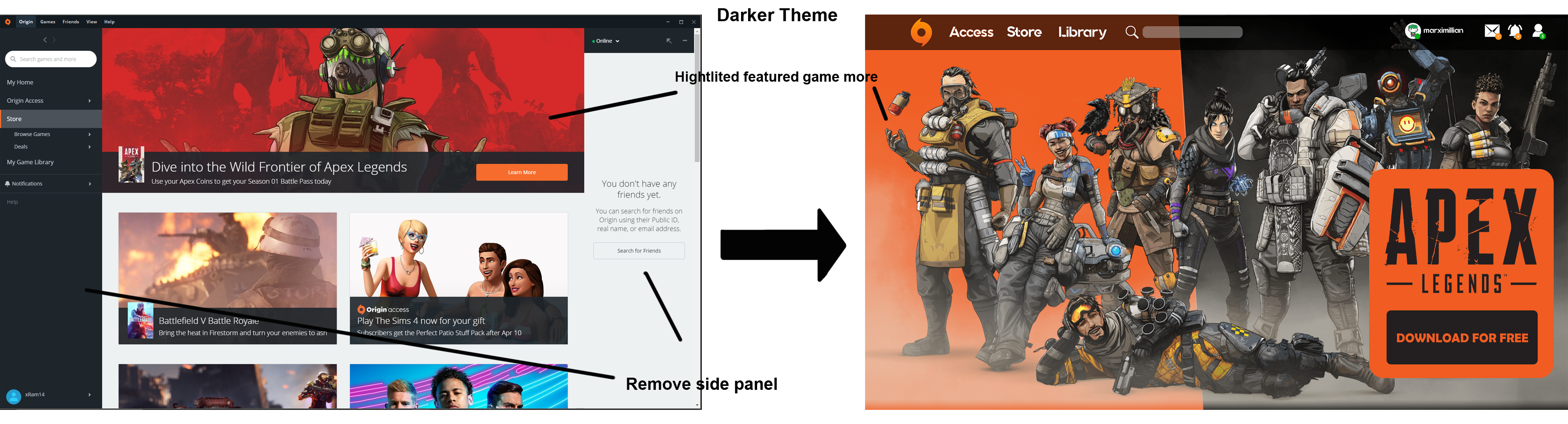 A reason why I think Origin should consider redesigning their online Store is because I think it behind Steam's design. Steam's client doesn't feel as clutter and is also more visual appealing in my opinion. I've seen a poll where users have preferance of darker themes vs light themes such as the Origin one.